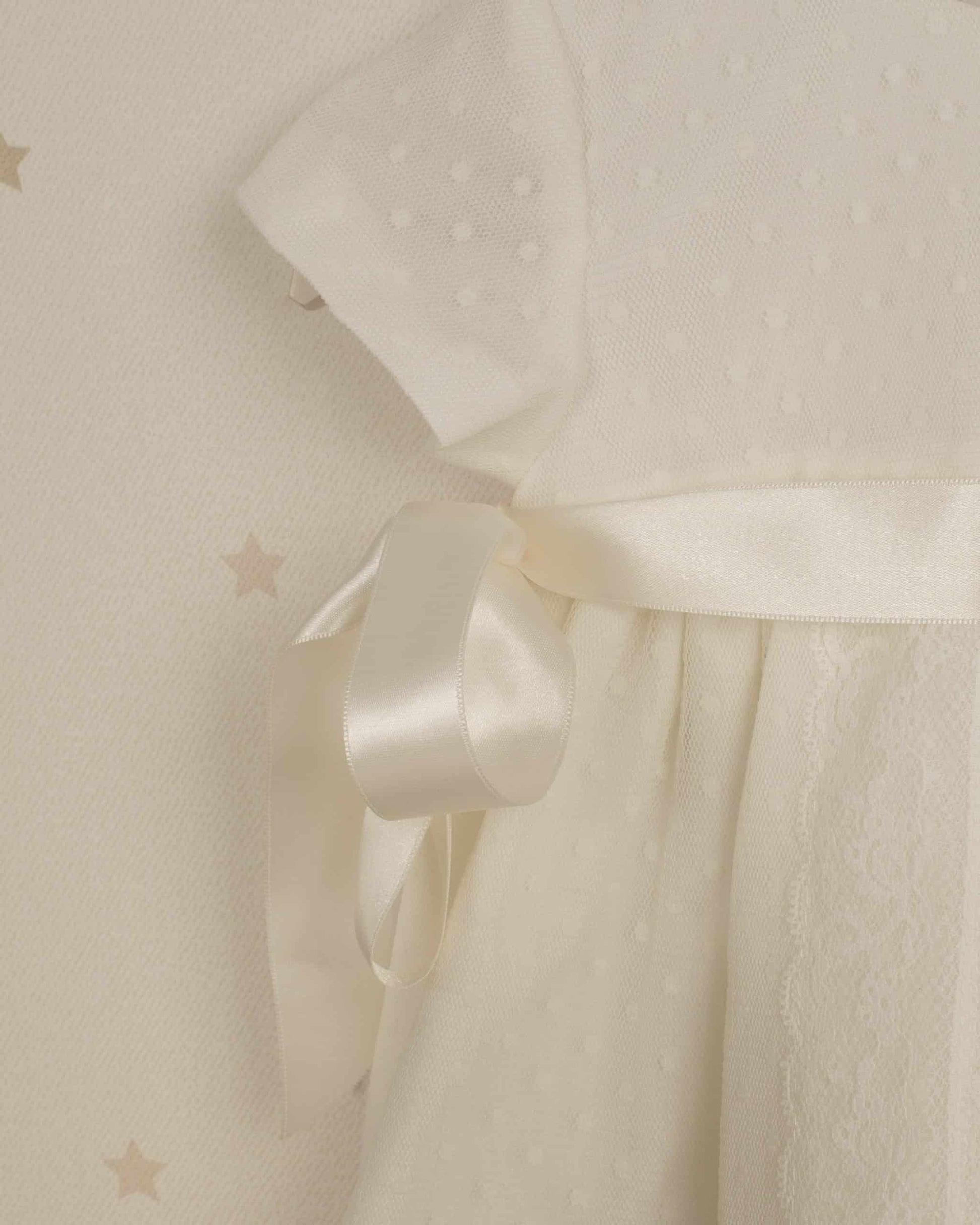 VESTIDO JESUSITO TUL TOPOS CON CAPOTA