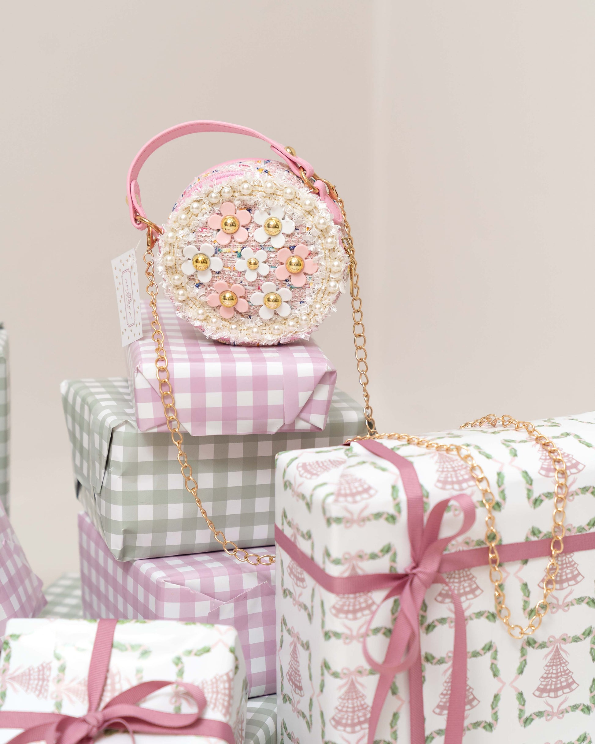 BOLSO REDONDO DE FIBRAS CON FLORES