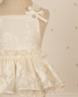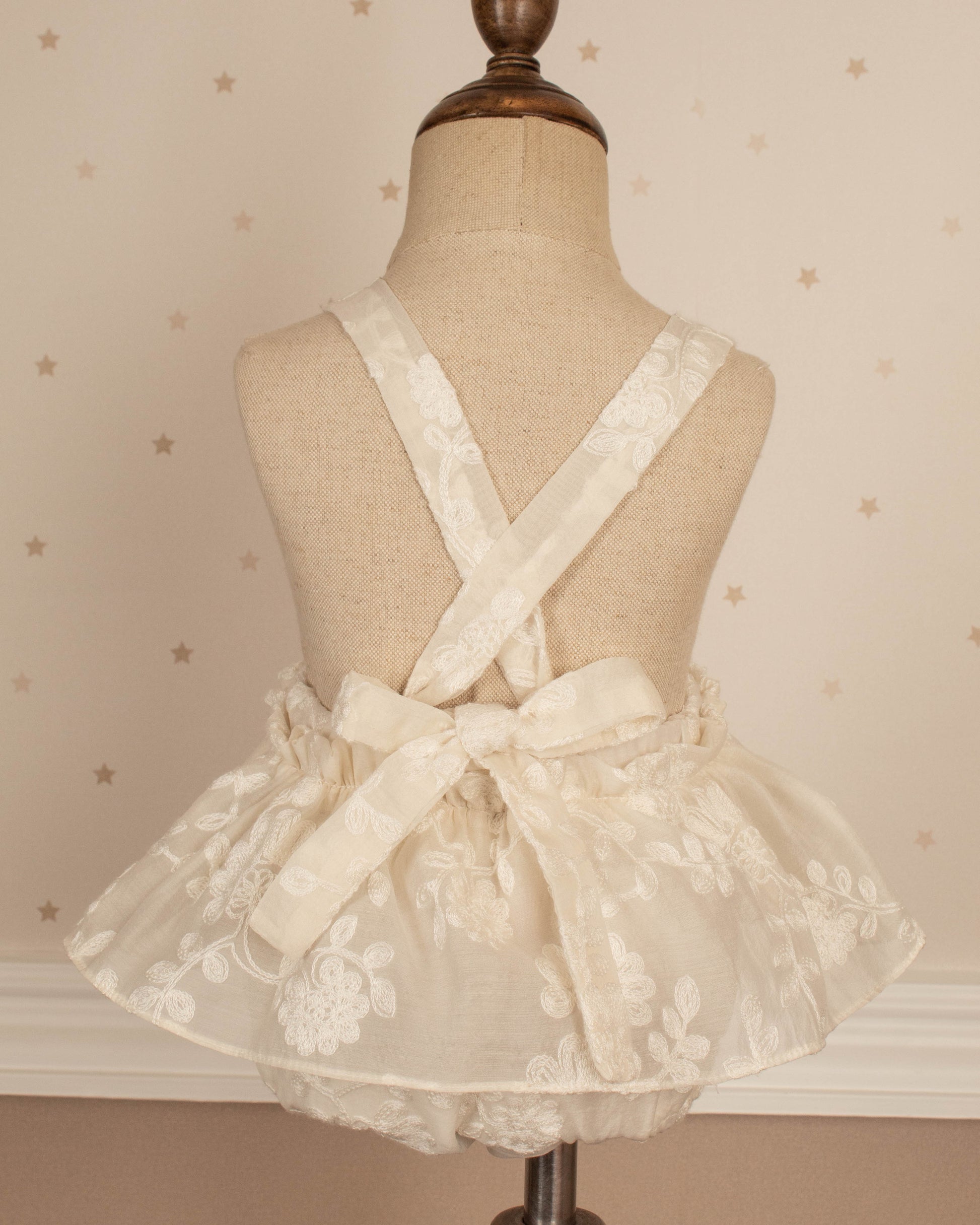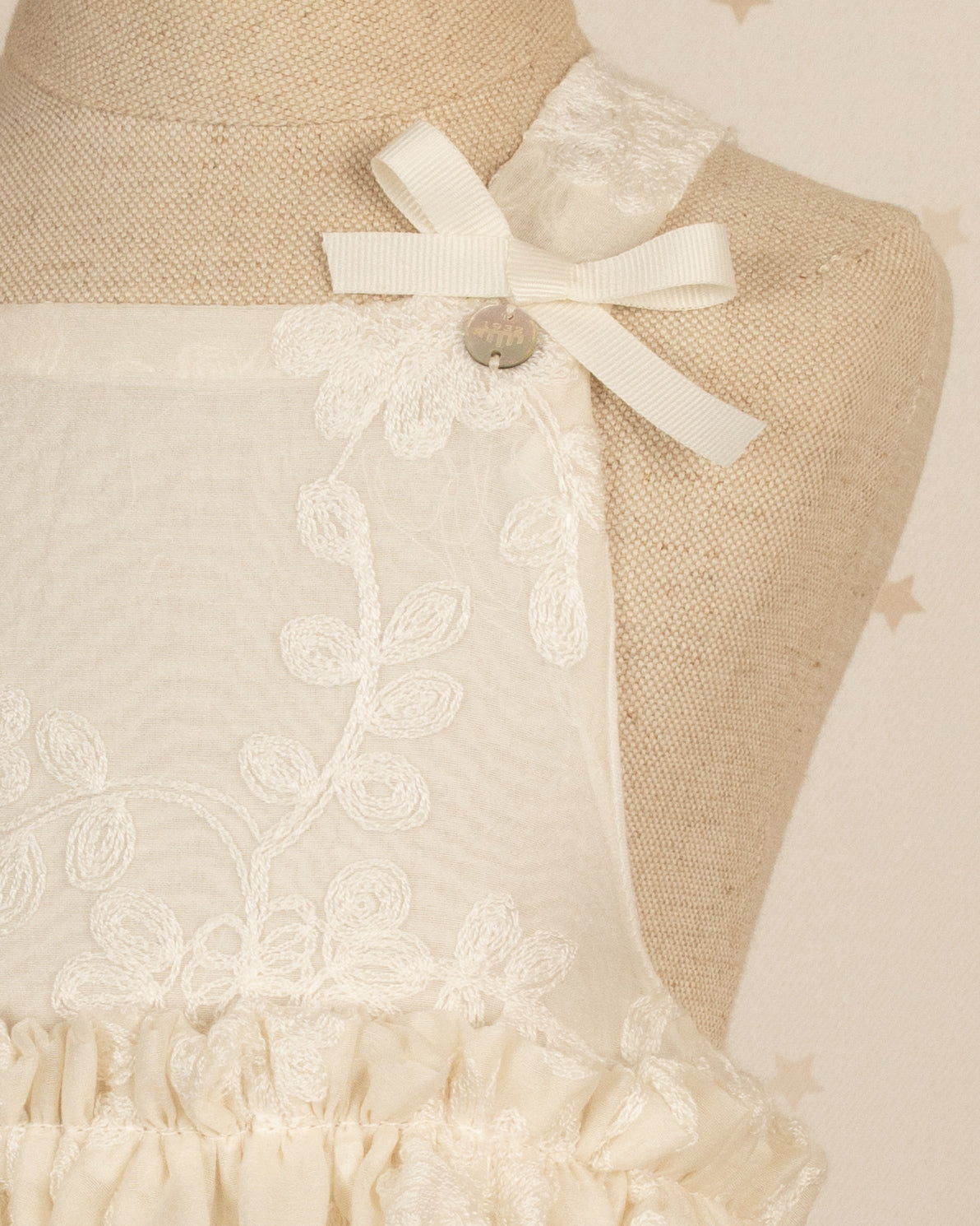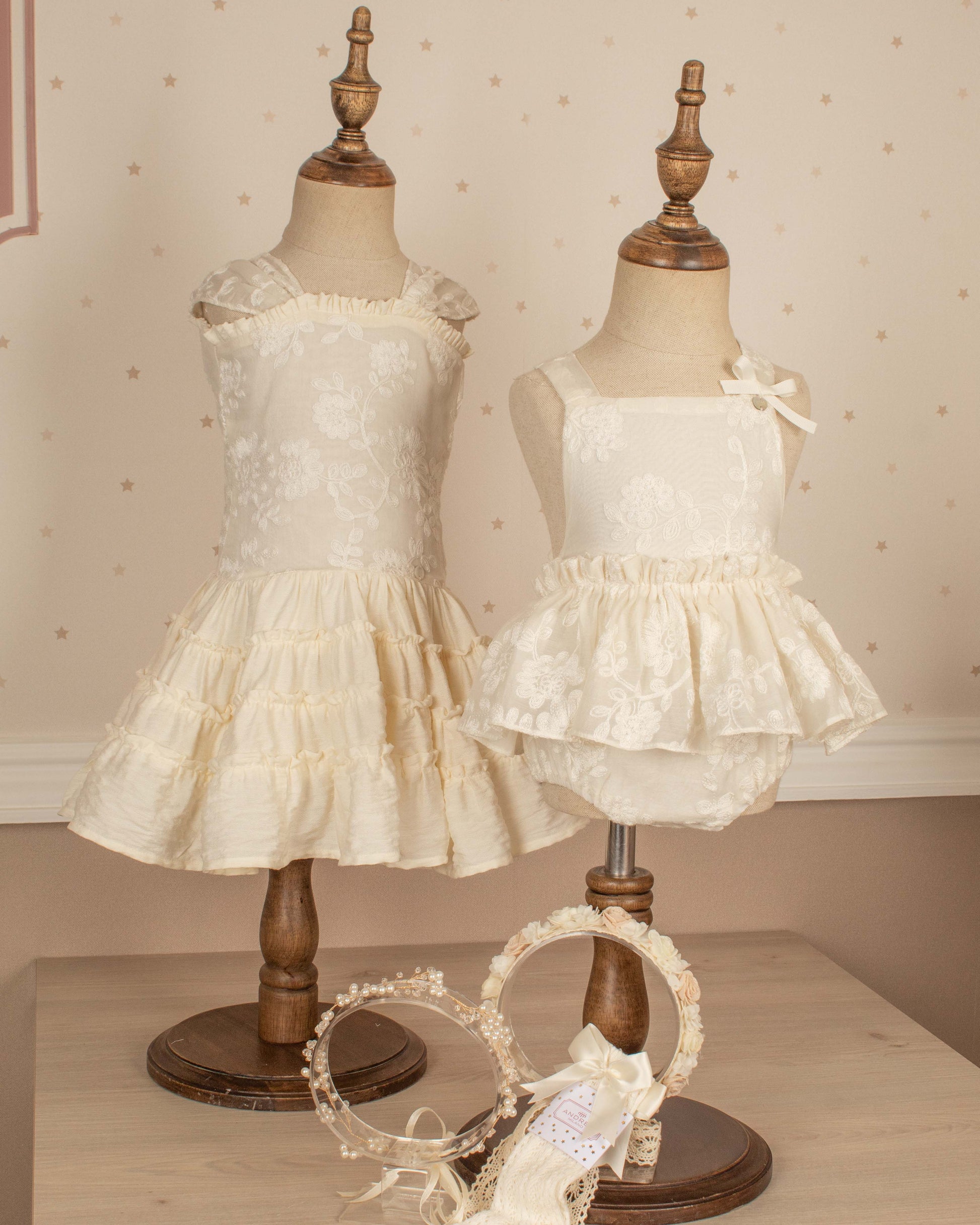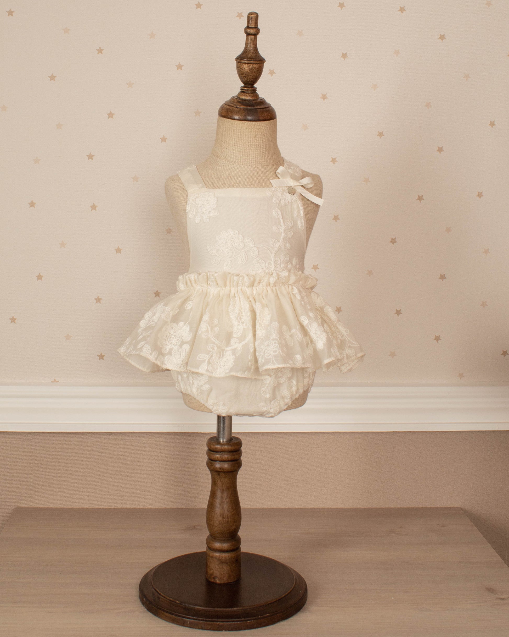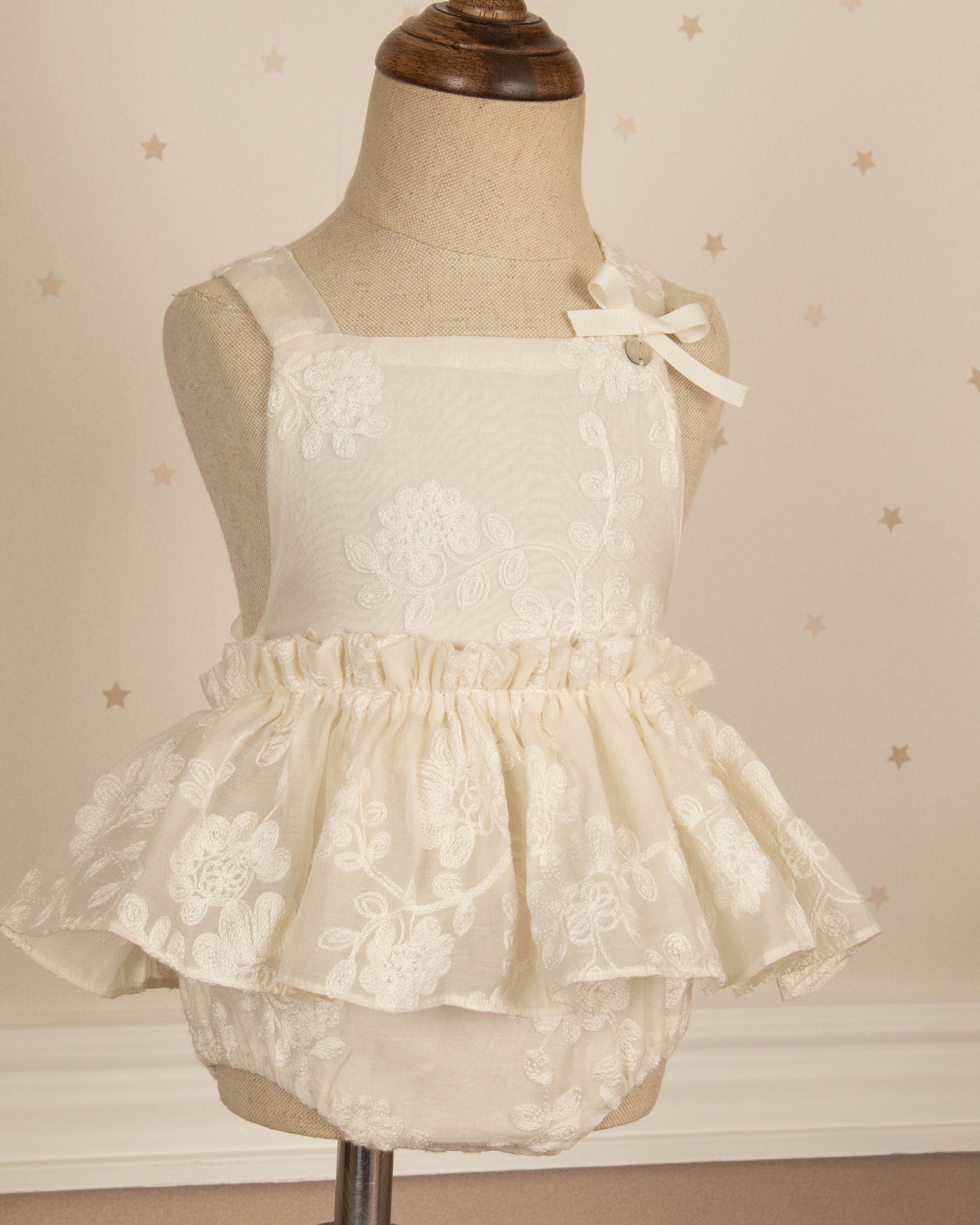 Esta diseñado para los primeros momentos que se vuelven inolvidables. Una pieza delicada y luminosa que refleja la ternura de la infancia con detalles artesanales y materiales suaves pensados para la piel del bebé.