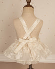El cuerpo del diseño presenta un bordado floral en tono ivory, inspirado en los jardines suaves y románticos que dan vida a la colección Sueños. Sus tirantes con pequeños lazos aportan un toque clásico y femenino, mientras que la silueta tipo bombacho brinda libertad de movimiento y comodidad durante todo el día.