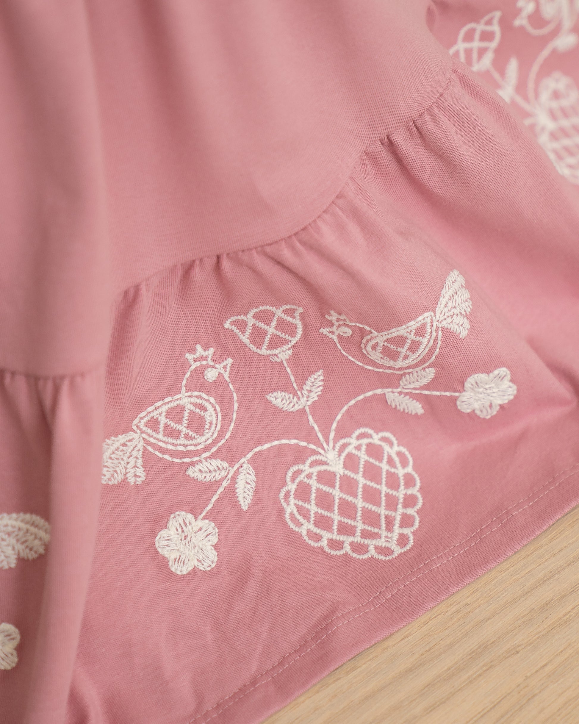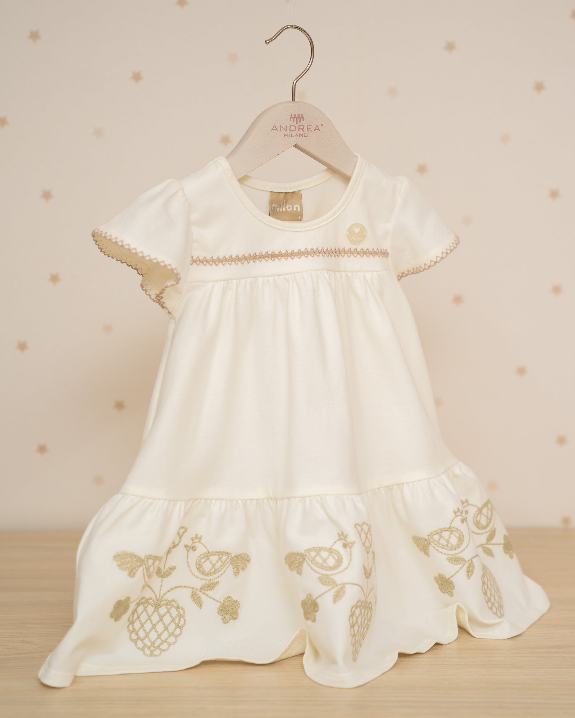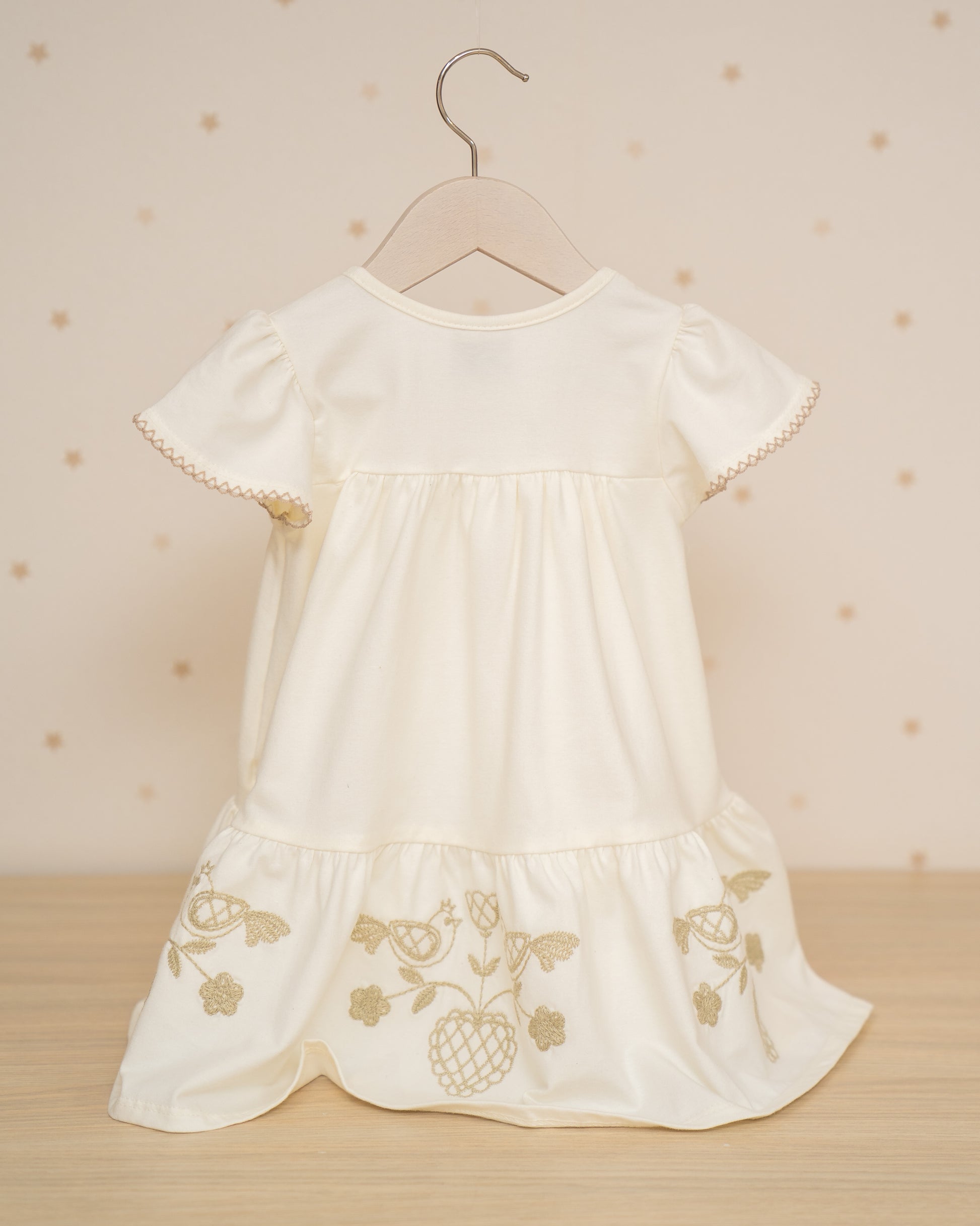 VESTIDO TALEGO ARANDELAS HOMBROS Y ADORNOS BORDADOS