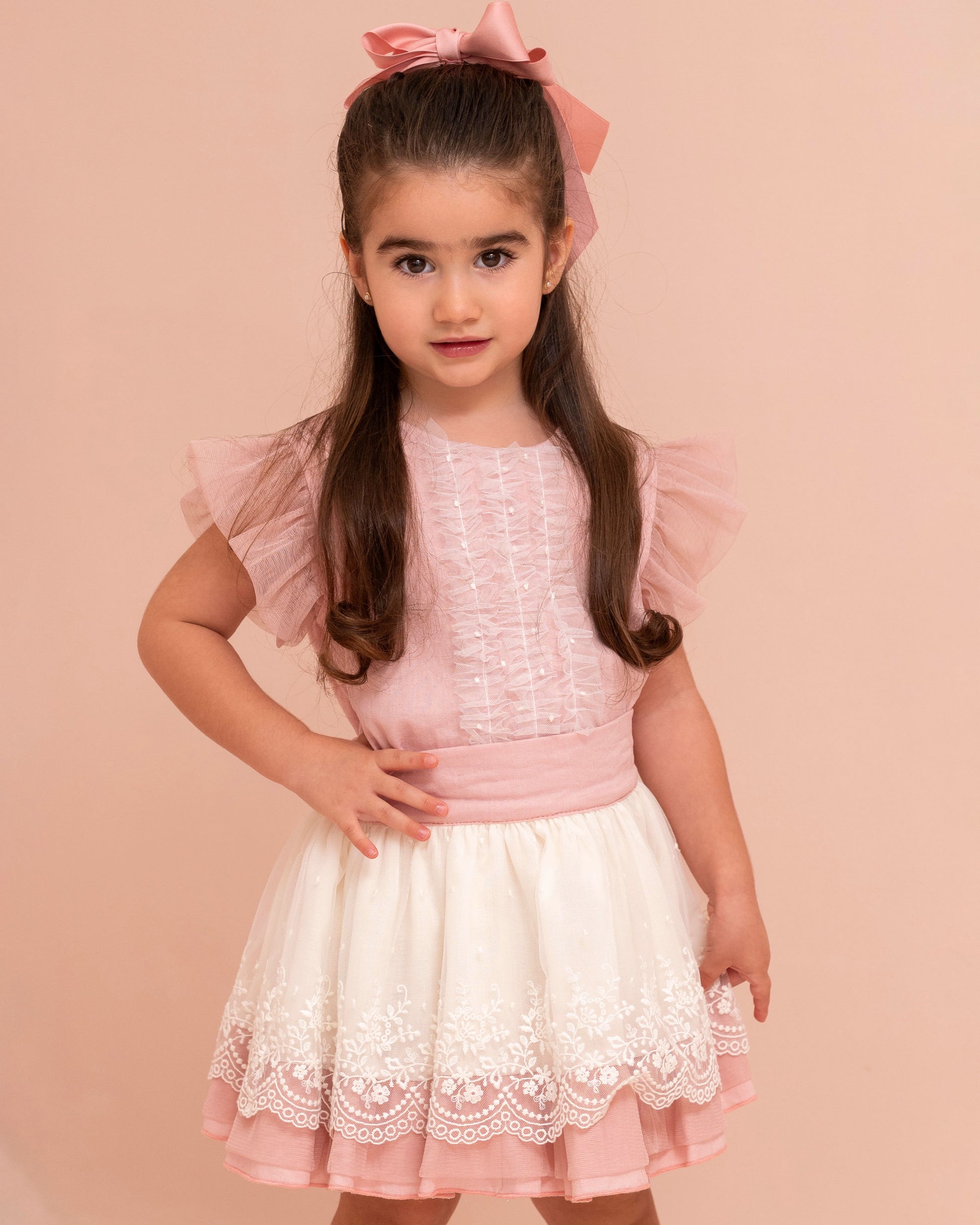 CONJUNTO BLUSA ARANDELAS DE TUL Y FALDA