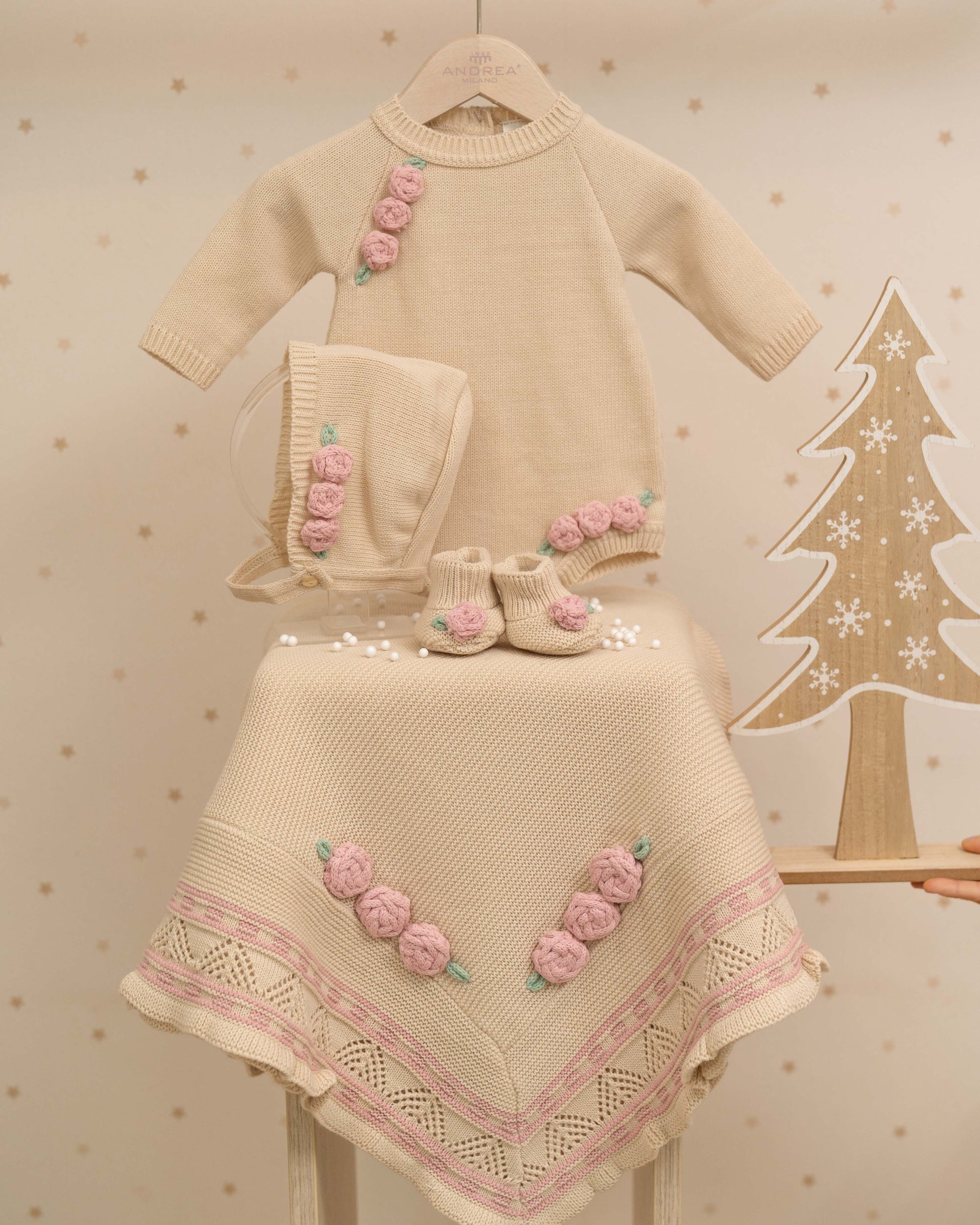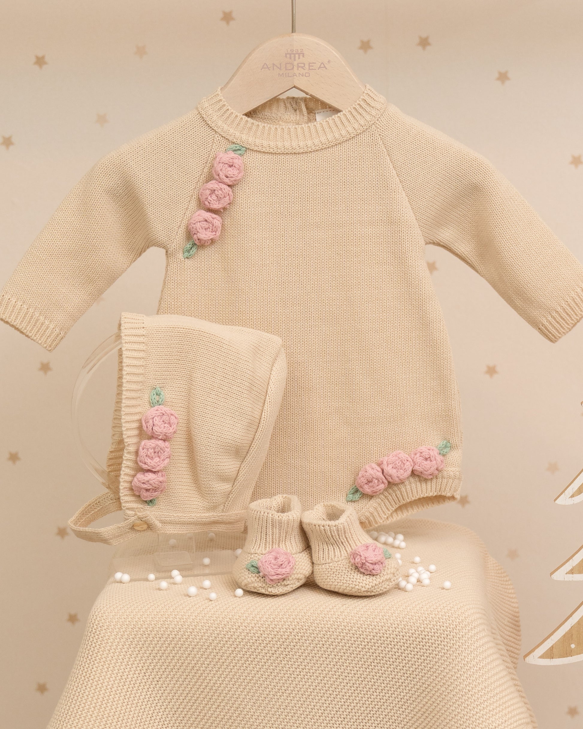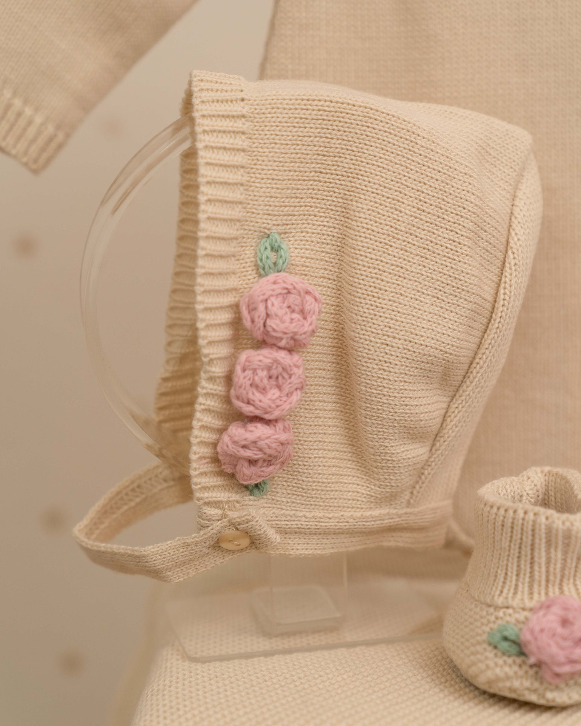 PELELE CHLOE FLORES BORDADAS CON GORRO Y PATUCOS NOVENA FLORAL