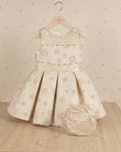 VESTIDO TALLE ALTO FALDA PLIEGUES PERLAS CUELLO CON BOLSO