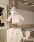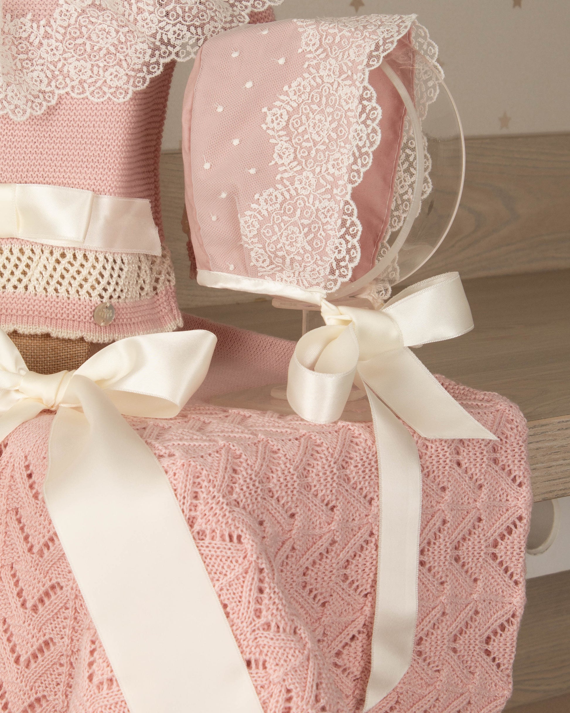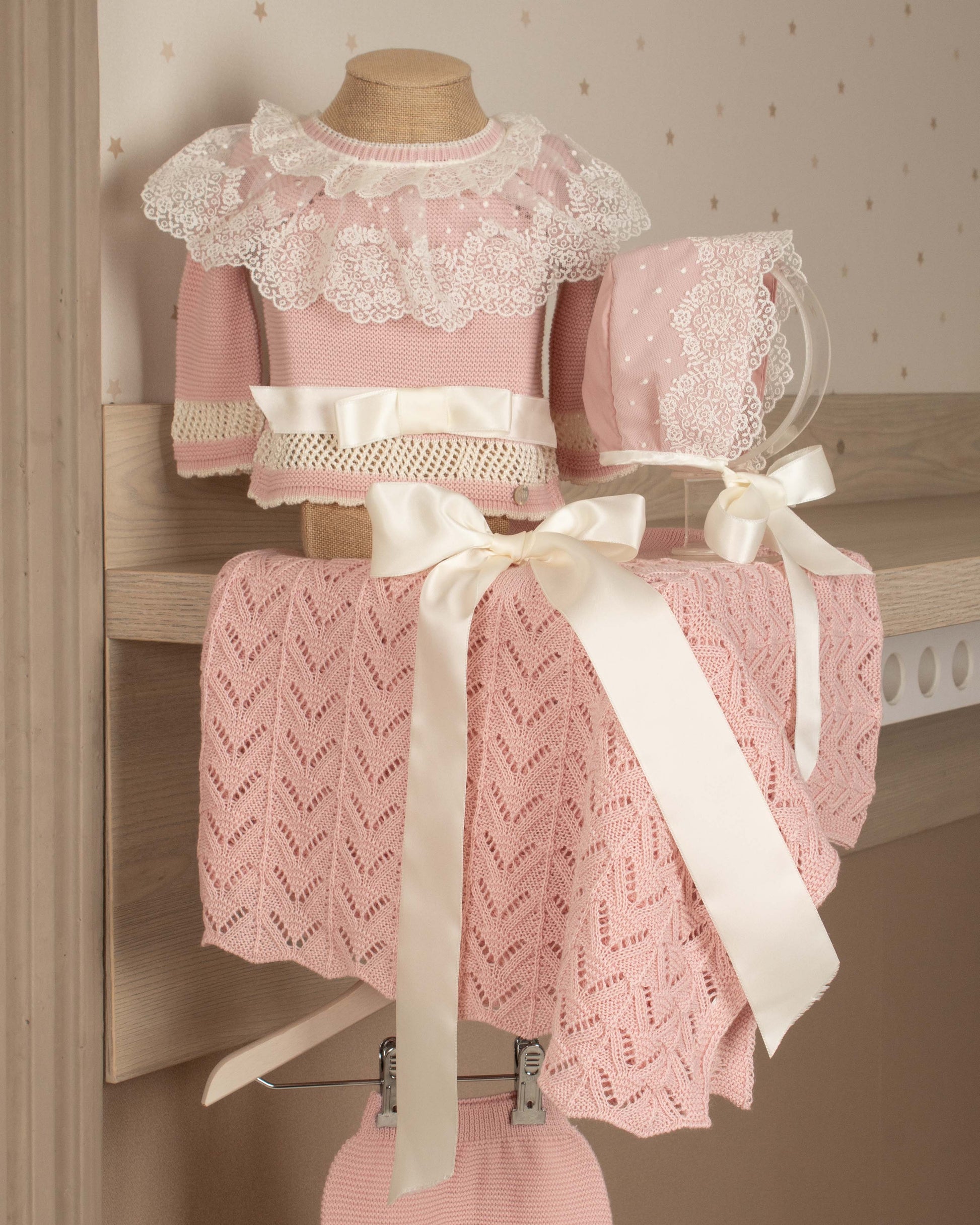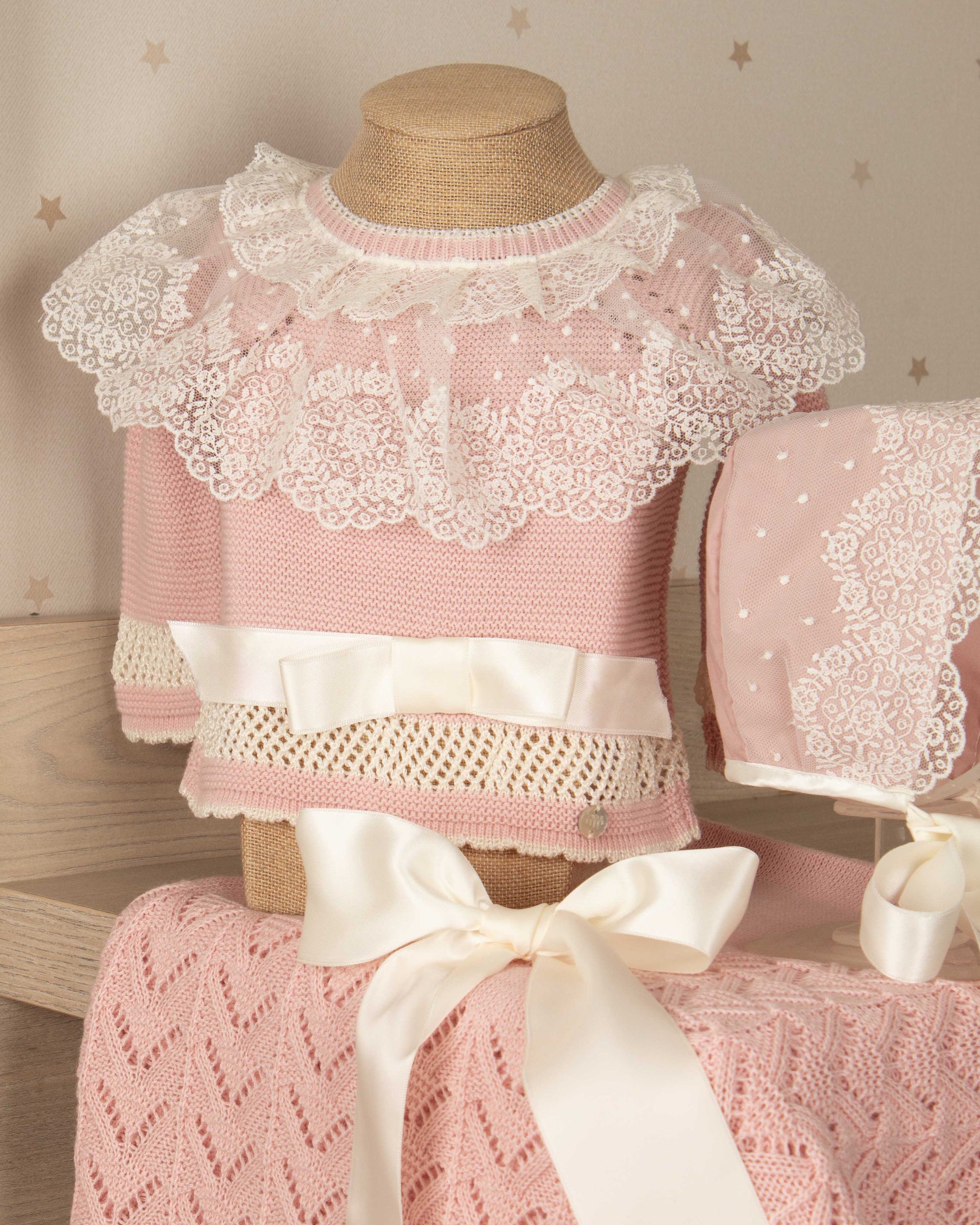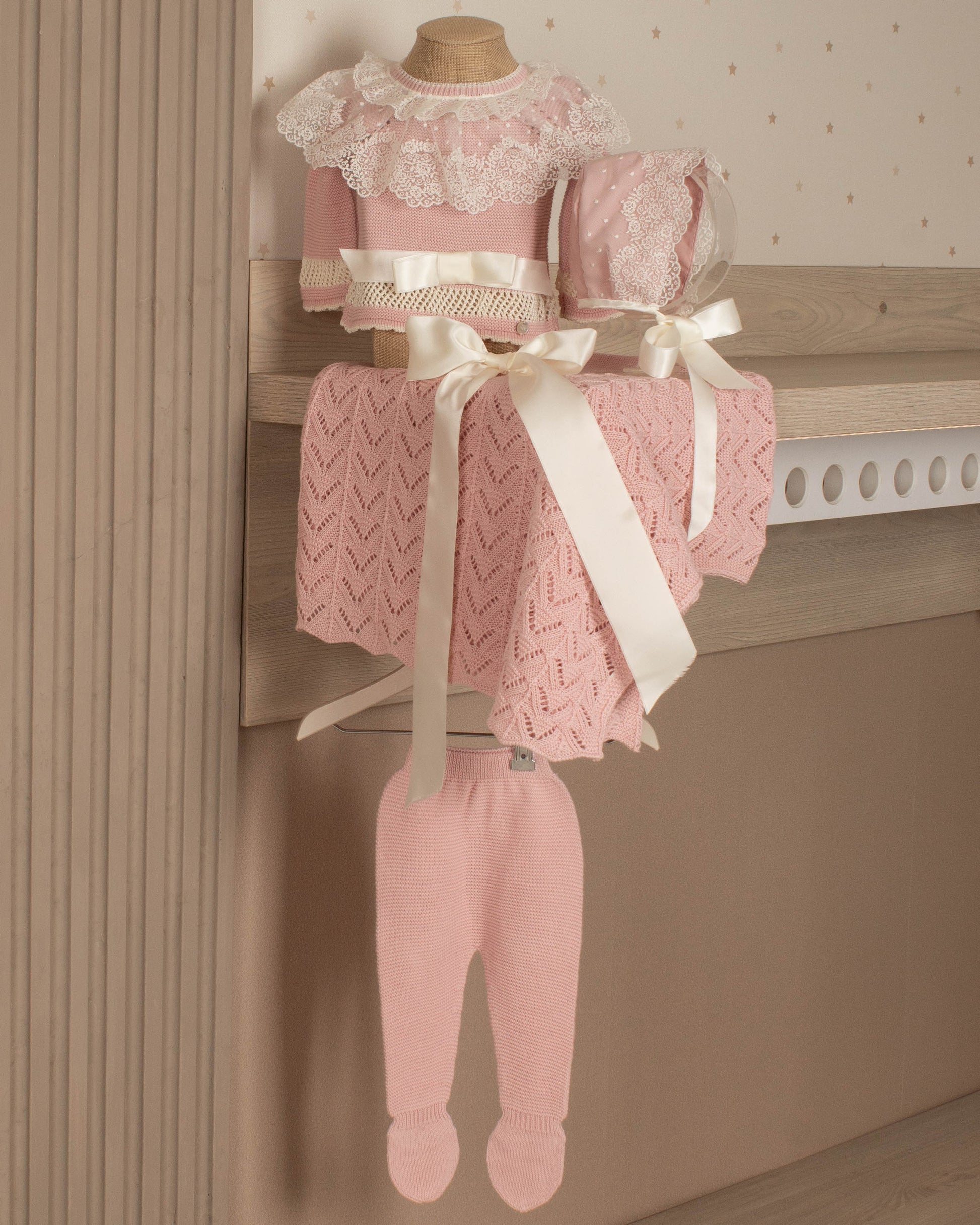 Cada set está compuesto por piezas perfectamente coordinadas —conjunto, gorrito y toquilla— diseñadas para envolverla con suavidad, abrigo y delicadeza desde el primer momento. No es solo estética, es intención: cada elemento cumple una función para cuidar su temperatura corporal, protegerla y hacerla sentir contenida, como en el vientre de mamá.