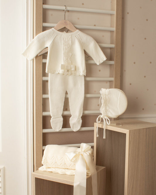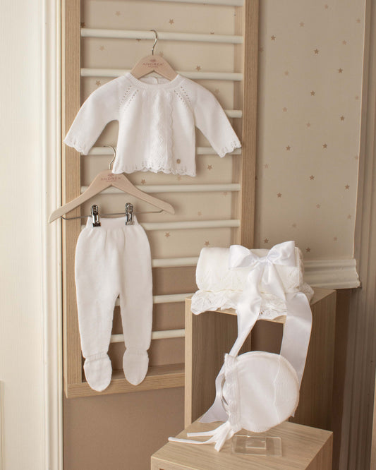 La llegada de un bebé es un momento que transforma todo… Y merece ser acompañado con la misma delicadeza con la que fue esperado. La colección Royals reúne primeras puestas diseñadas para recibir al recién nacido con suavidad, abrigo y un cuidado absoluto en cada detalle.