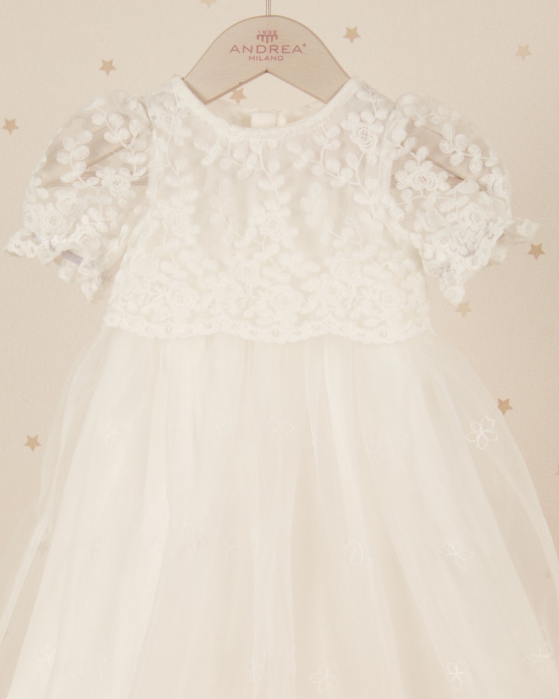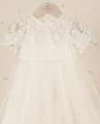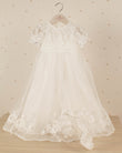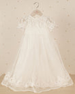 Elegancia en cada puntada. Este vestido de ceremonia se distingue por su caída impecable y detalles en encaje que evocan tradición y ternura.