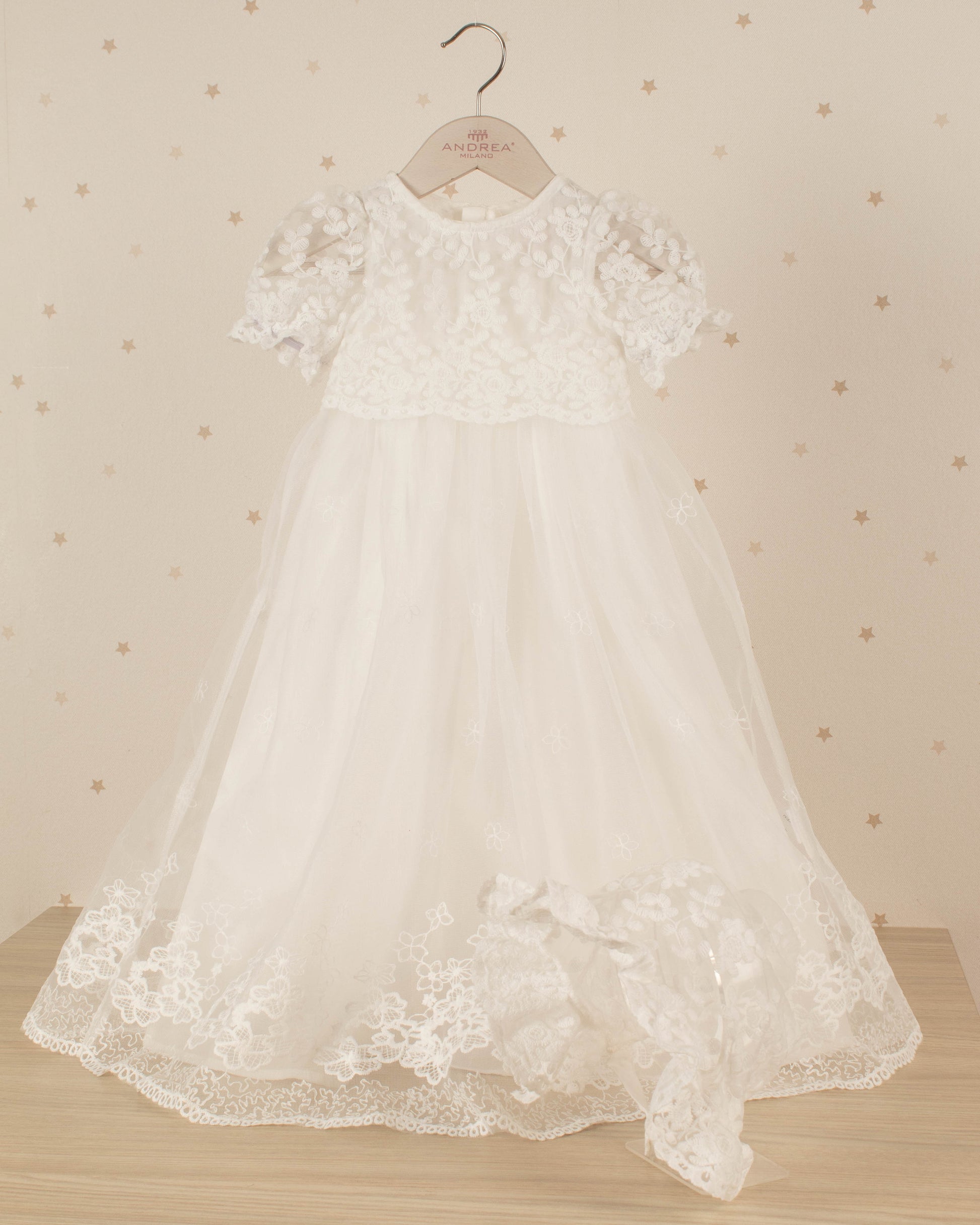 FALDON DE BAUTIZO CON MANGAS PECHO BORDADO CON GORRO