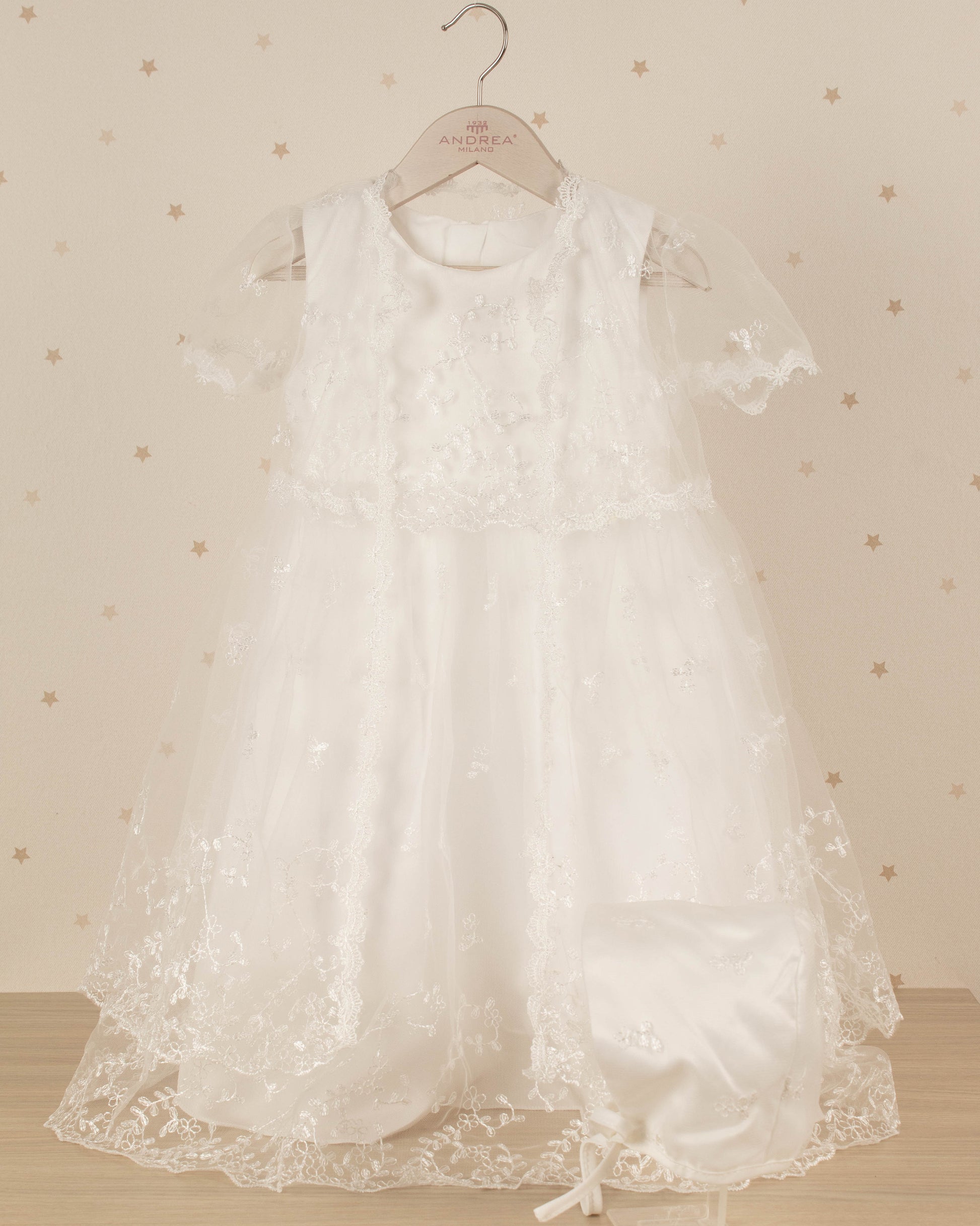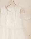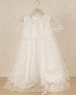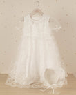 VESTIDO DE BAUTIZO FLORES BORDADAS CON CAPA Y GORRO