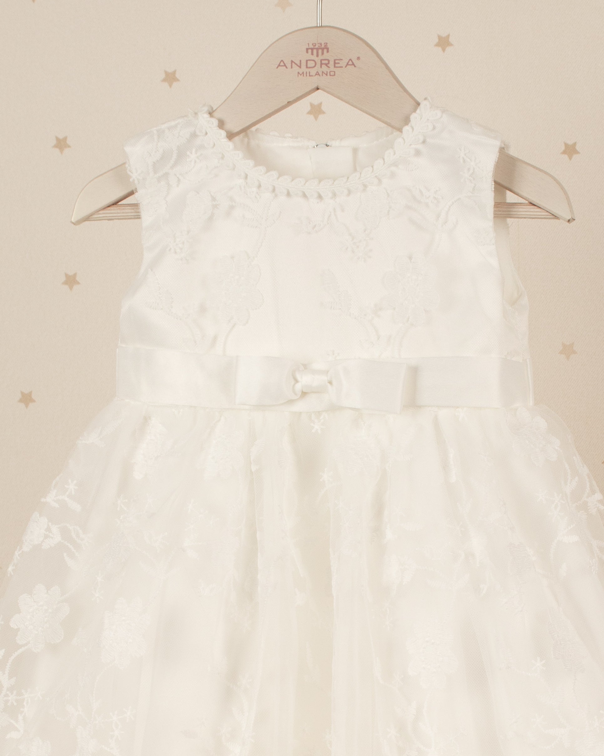 VESTIDO DE BAUTIZO LAZO CINTURA CON GORRO