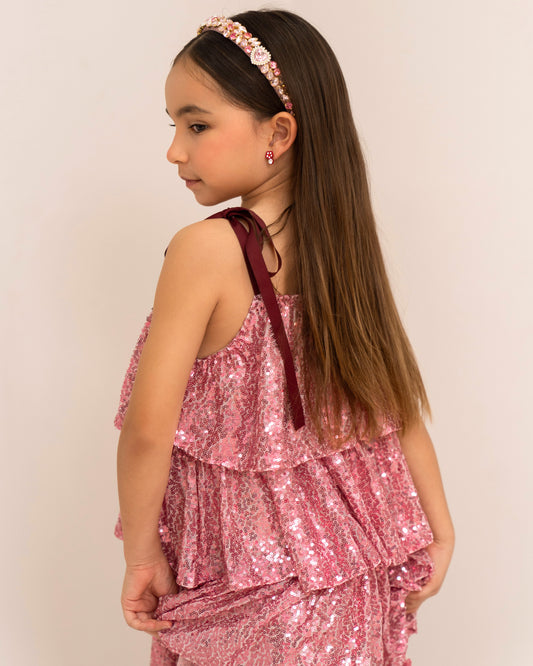 La modelo tiene 6 años y usa talla 8. Vestido fresco y fluido, con detalles...
