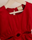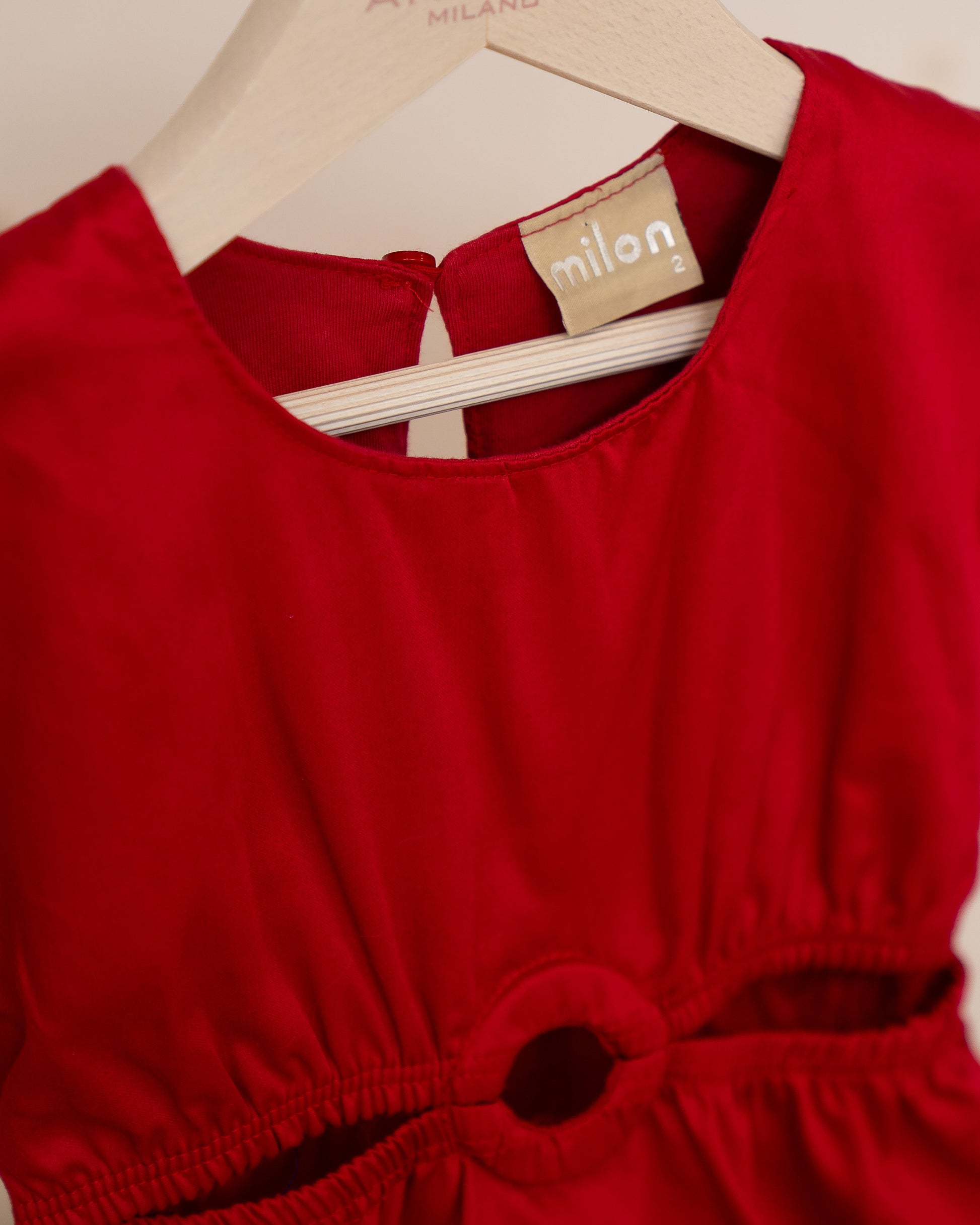 Un diseño moderno y versátil que combina la frescura del rojo con un detalle central delicado. Perfecto para una celebración especial o una ocasión elegante.