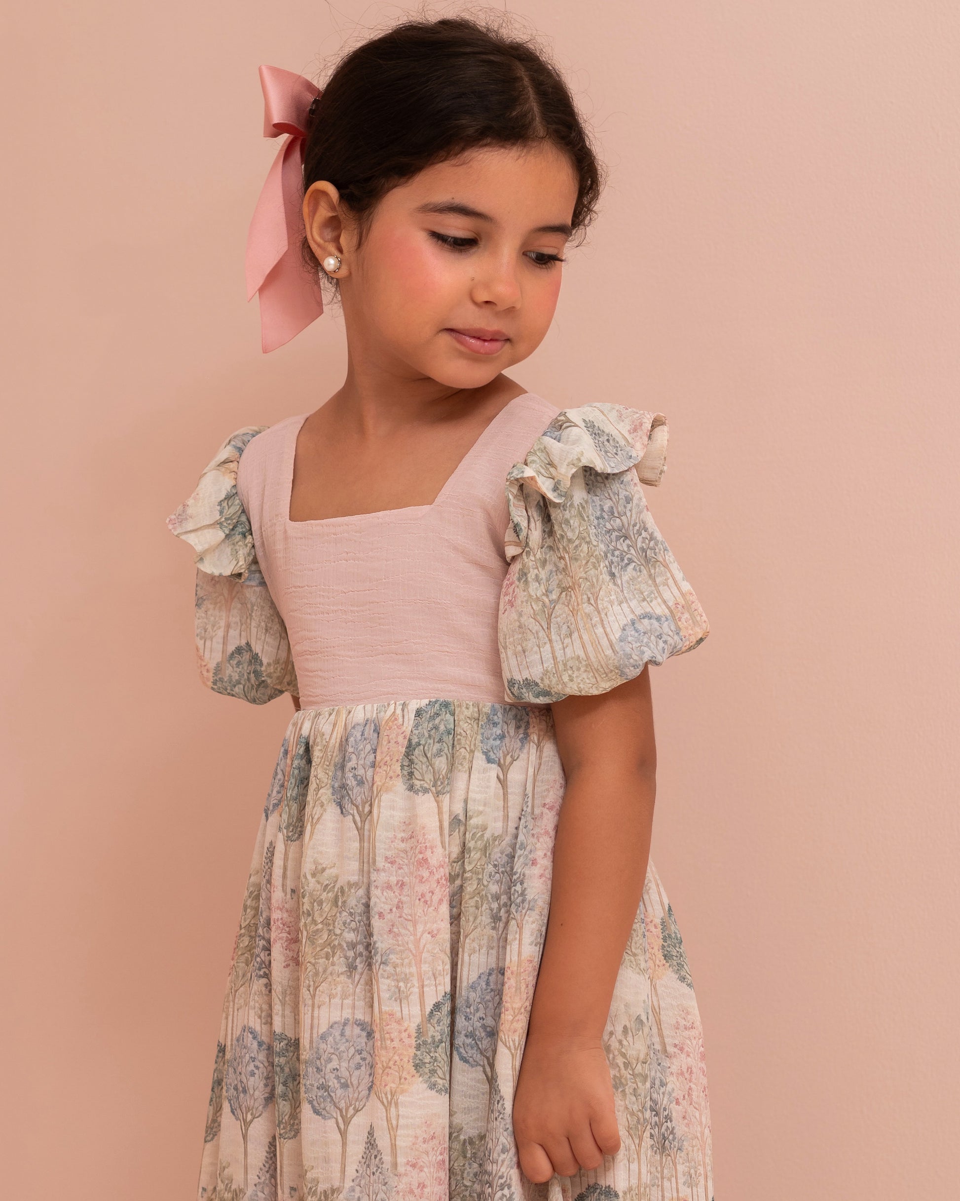 Un vestido que susurra dulzura y elegancia. Perfecto para esas tardes donde la imaginación vuela y los recuerdos se vuelven eternos.