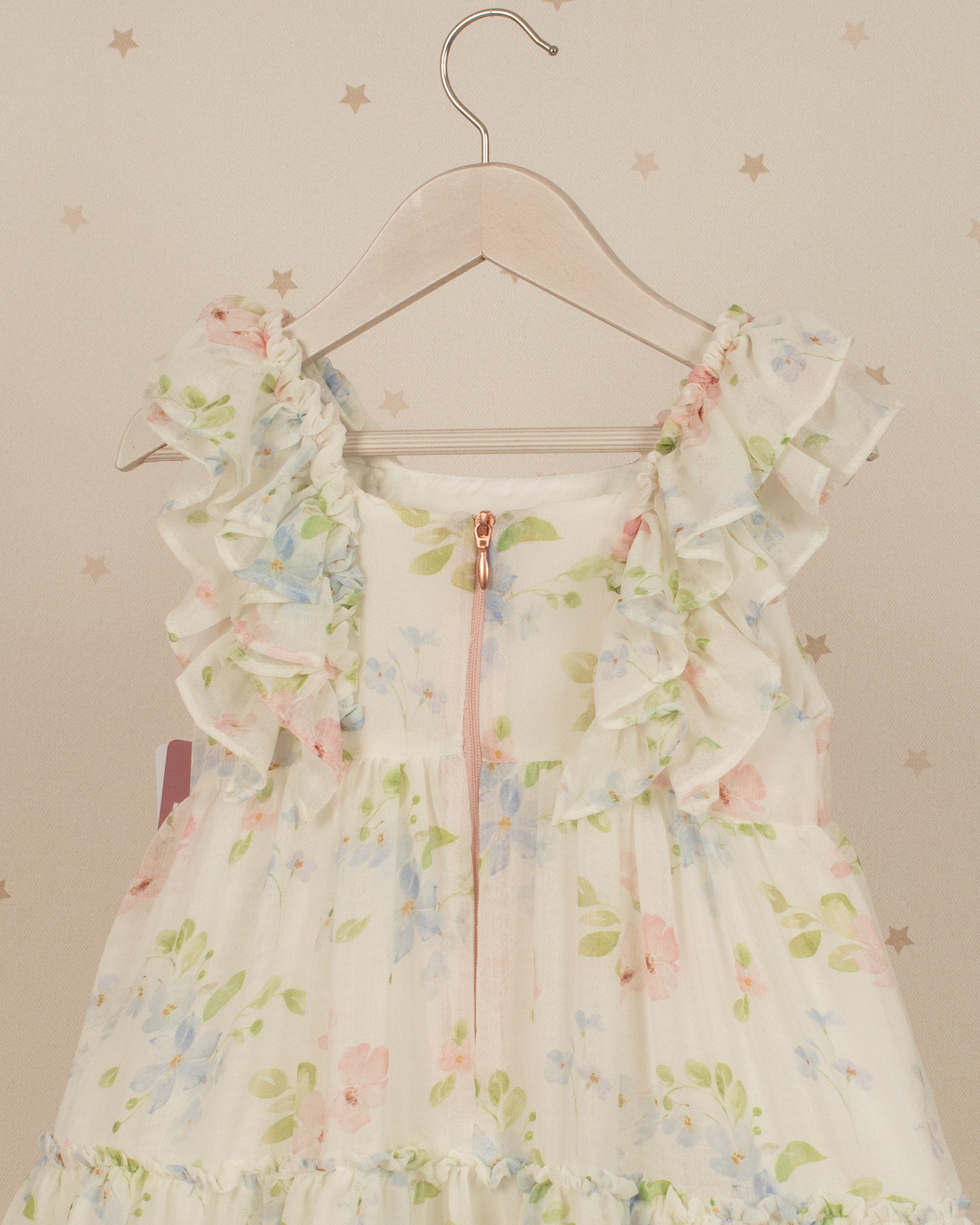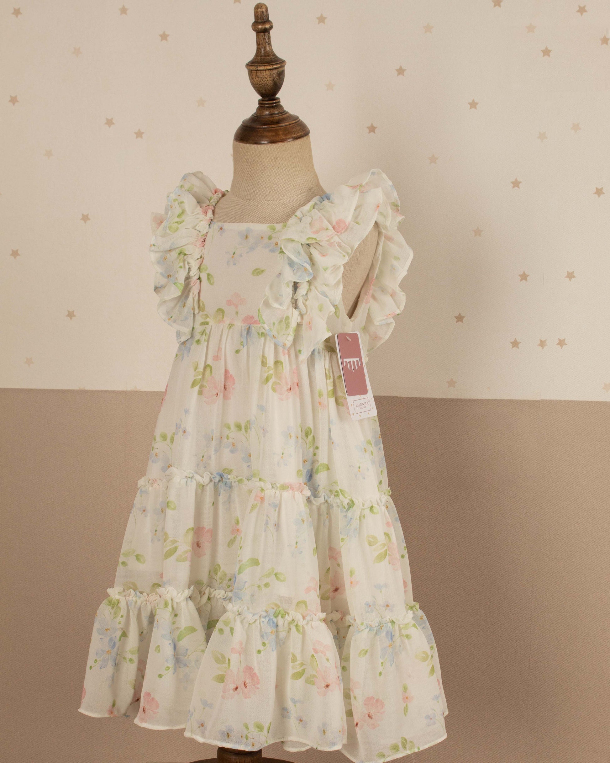 Esa fue nuestra inspiración para crear Dulce Camino, una colección llena de estampados delicados, siluetas ligeras y tonos suaves que acompañan a tu princesa en cada paso.