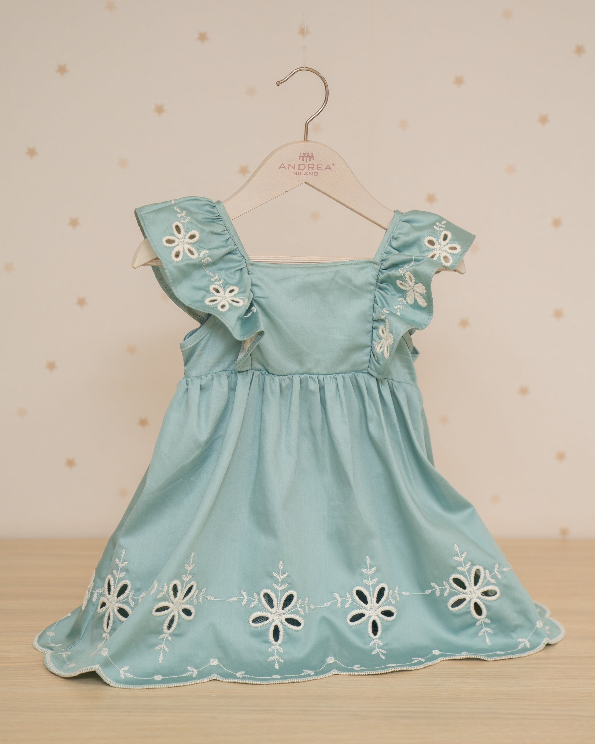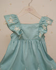 VESTIDO TALLE ALTO ARANDELAS HOMBROS Y FALDA BORDADA