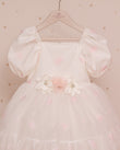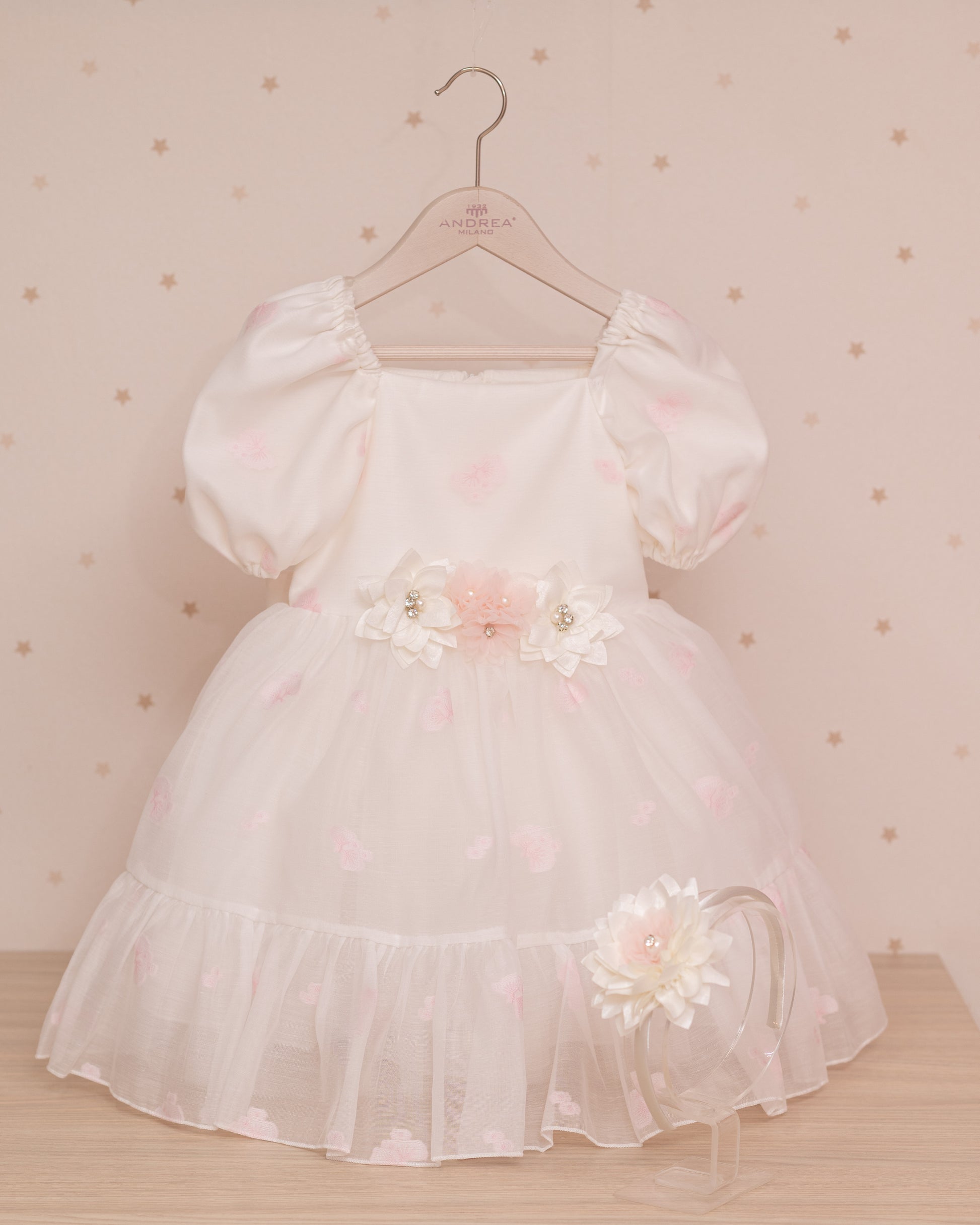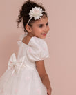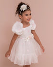 VESTIDO TALLE ALTO CON MANGAS Y ADORNO DE FLORES CON DIADEMA