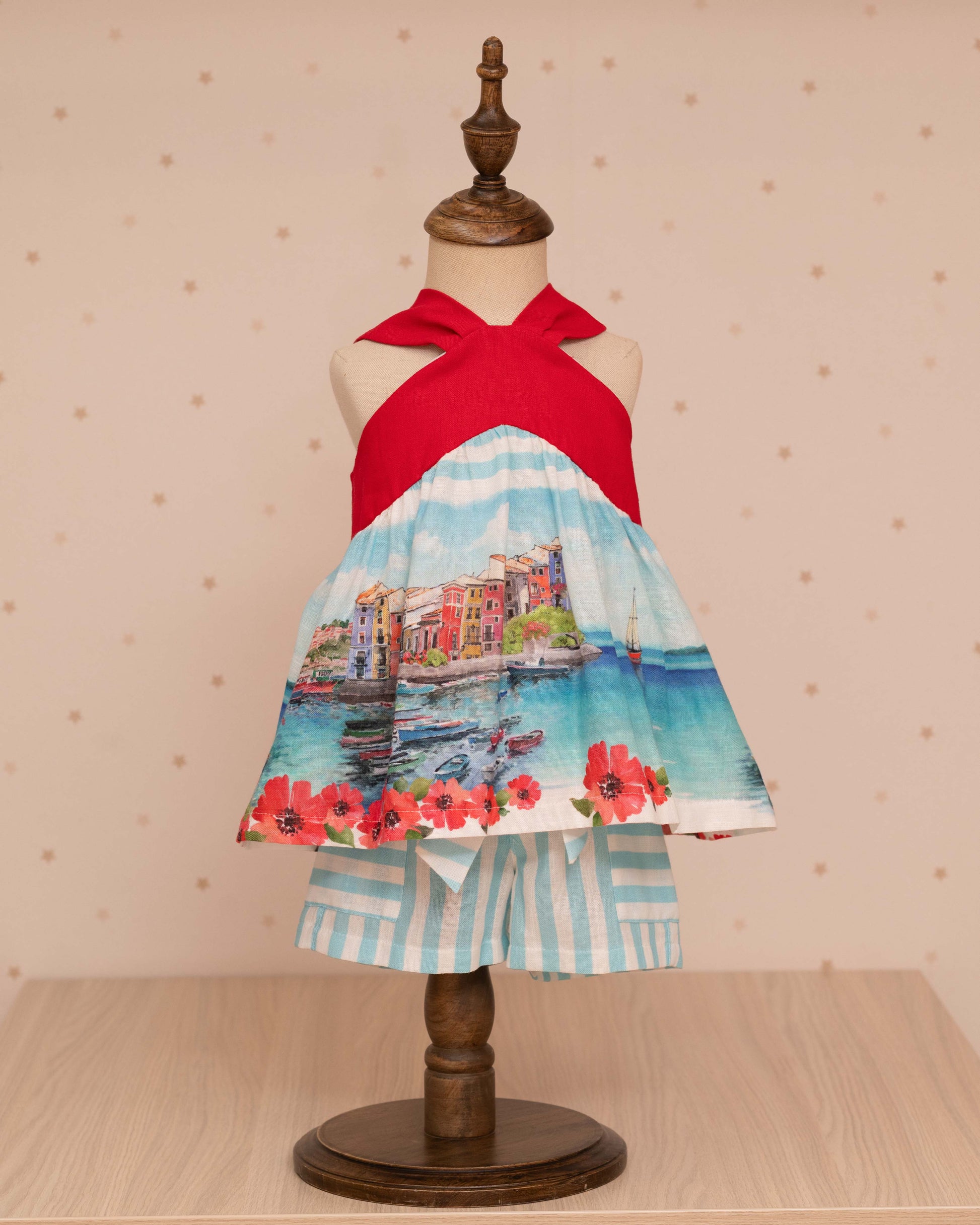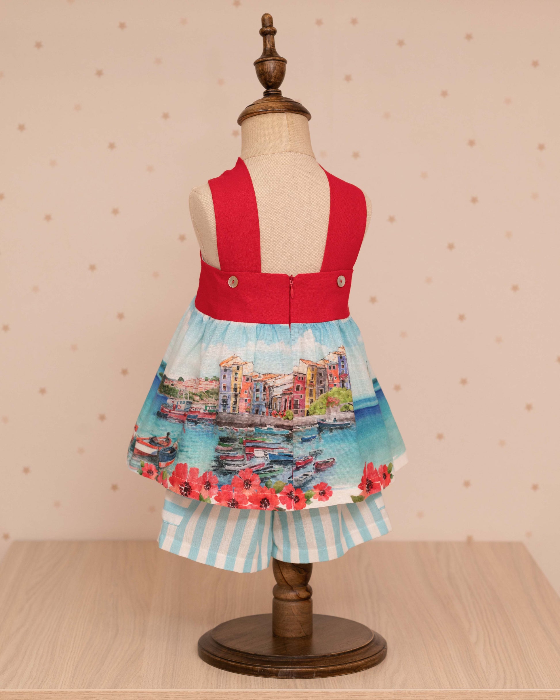 CONJUNTO BLUSA PAISAJE Y SHORT RAYAS